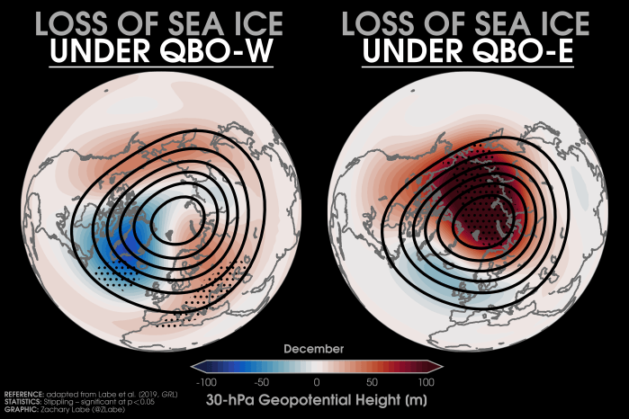 Labe, Z.M., Y. Peings, and G. Magnusdottir (2019). The effect of QBO phase on the atmospheric response to projected Arctic sea ice loss in early winter, Geophysical Research Letters, DOI:10.1029/2019GL083095